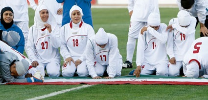 イランの女子サッカーチームがイスラム的ウェアで