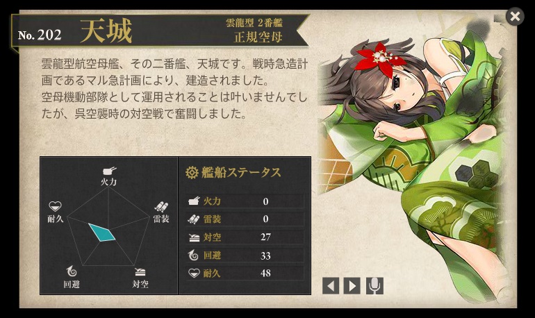 島風(86)浦風(94)榛名るな(94)比叡(97)加賀(75)赤城(87)