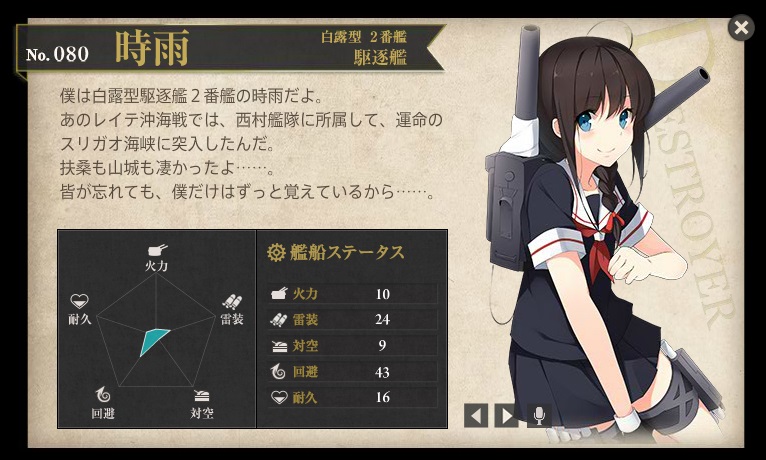 時雨(改造前)が一番だったんだけど